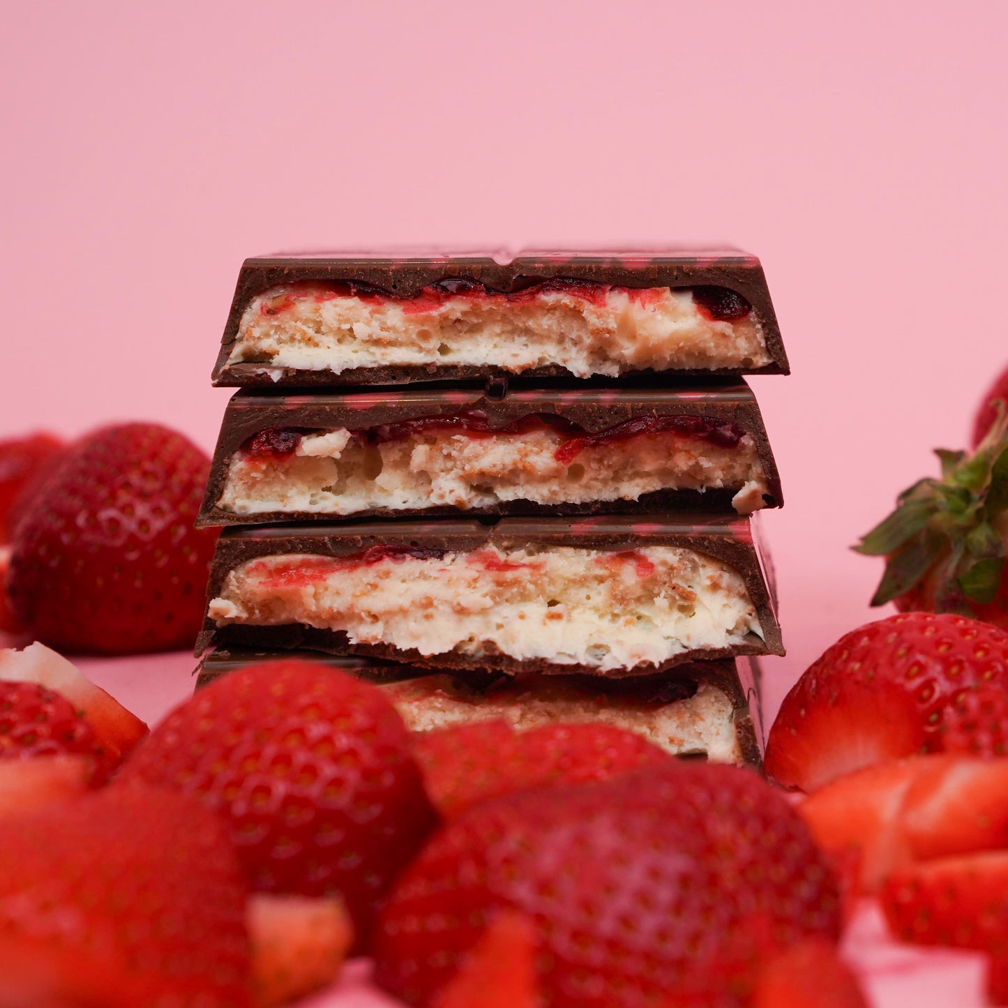 "THIS MILK CHOCOLATE STRAWBERRY CHEESECAKE BAR WAS TO LIVE FOR.