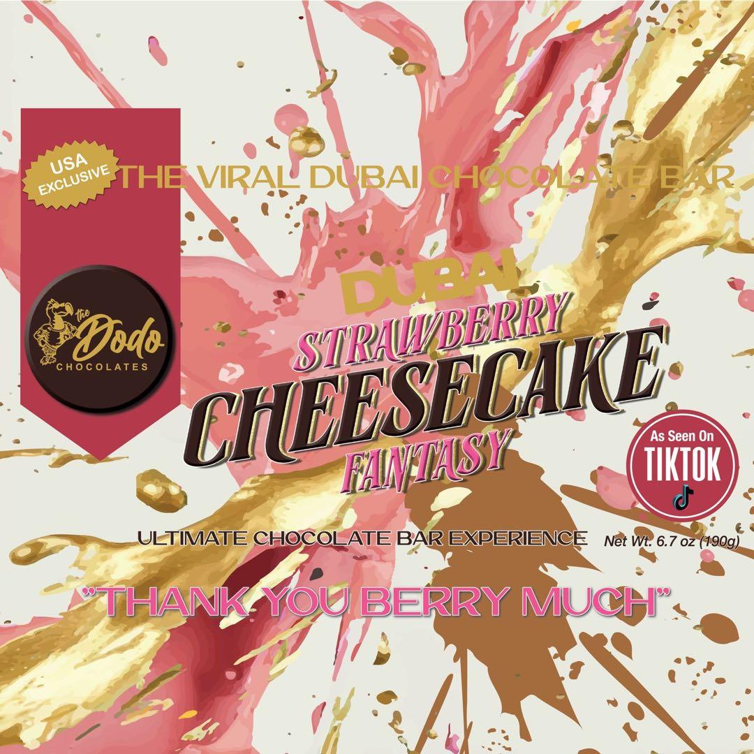 Don't miss your chance to taste the magic of The Dodo Chocolate's Strawberry Cheesecake Fantasy Bar. Order now and see why this Dubai-inspired delicacy is the talk of TikTok and beyond!