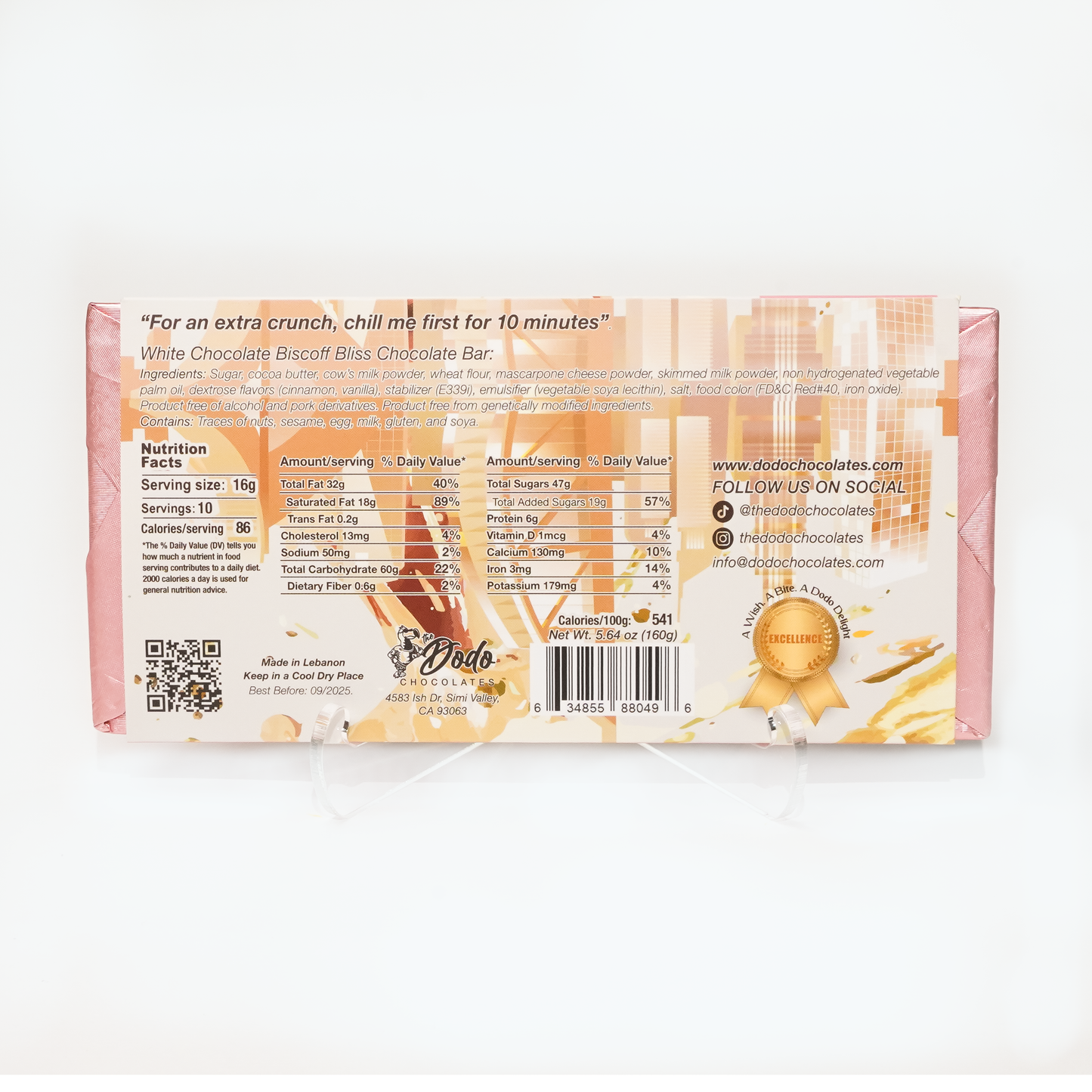 Prepare to experience bliss in every bite with The Dodo Chocolates White Chocolate Cookie Butter Bliss Bar. Now launching exclusively in the USA, this sensational chocolate bar is set to take your taste buds on a heavenly journey.